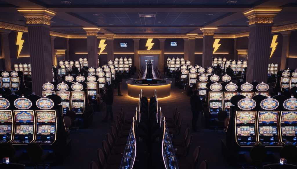 Typischerweise stehen im Zeus Casino Heilbronn verschiedene moderne Spielautomaten zur Verfügung, zum Teil mit Jackpot-Funktionen. Die Atmosphäre kann von ruhig und konzentriert bis lebhafter variieren, je nach Tageszeit und Besucheraufkommen.